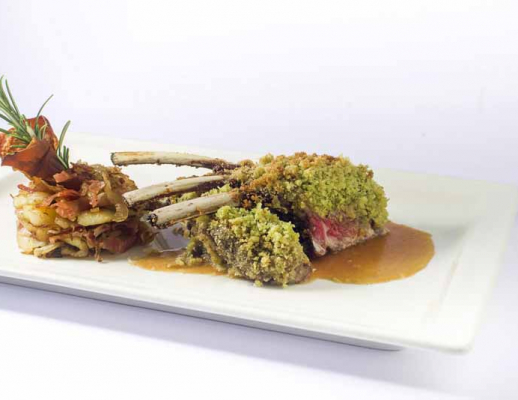 Tagliata di cervo con finferli, cipolla rossa e lamponi